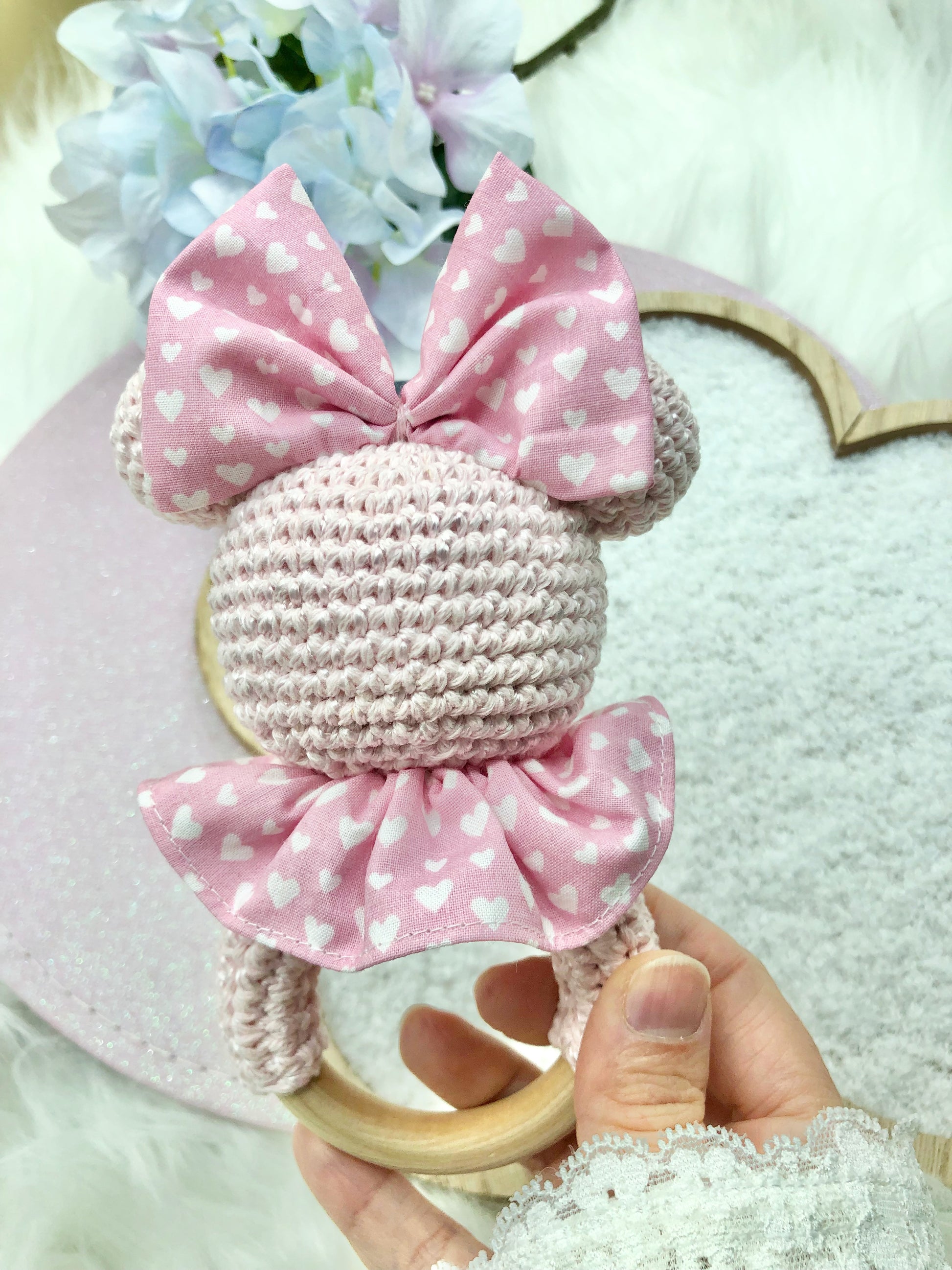Hochet au crochet Minnie "coeurs"