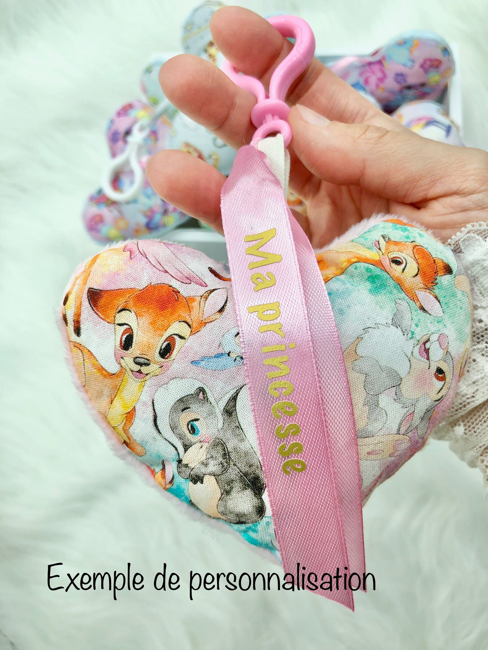 Il peut être personnalisé avec l'inscription de votre choix, sur un ruban (couleur coordonnée au coeur) que je fixerai au mousqueton. Il suffit de me l'indiquer dans la case "instructions spéciales concernant votre commande" dans votre panier. la personnalisation est offerte. Sans instructions de votre part, il sera livré sans ruban.